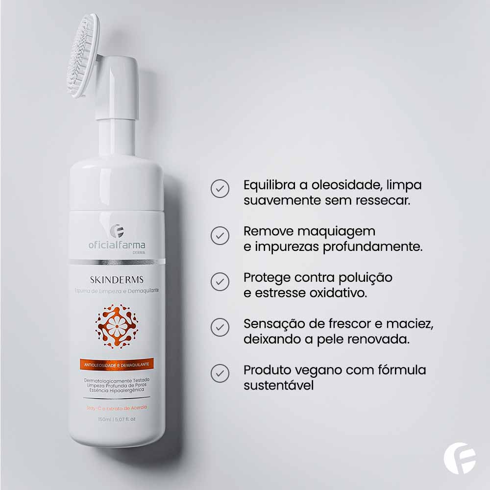 O Skinderms - Espuma de Limpeza Facial e Demaquilante é indicado para uso diário, promovendo uma limpeza completa com um toque suave. Ideal para você que busca praticidade, tecnologia e resultados visíveis no cuidado facial.